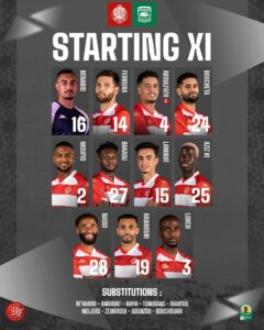 Wydad Casablanca XI : Benabid, Ferreira, Aboulfath, Boucheta, Moufid, Bakasu, Lamirat, Aziz Ki, Nassi, Hannouri, Lorch.